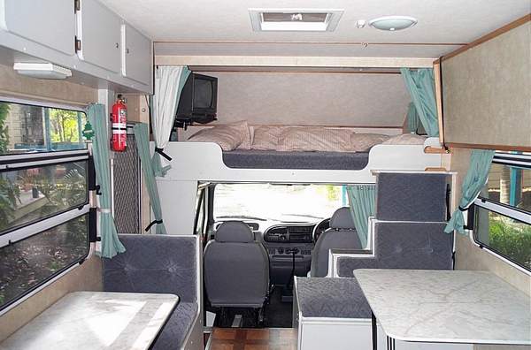 Nous avions les enfants qui dormaient sur la mezzanine et nous les parents sur la droite ou ont tansformaient la table en lits.